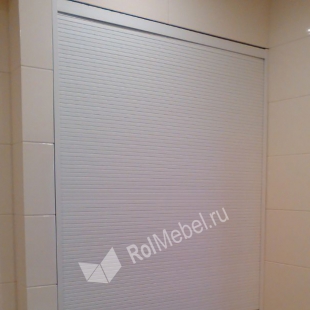 Рольставни в туалет компании Rehau. Данные рольставни были выбраны заказчиком для того чтобы закрыть нишу в туалете где в дальнейшем будет установлена стиральная машина и полки для бытовой химии. Кроме того основной задачей было установка таких дверей которые бы не мешали при открывании, т.к. проем достаточно широкий. По этому были выбраны роллеты. Роллеты удобно и бесшумно поднимаются вверх и скручиваются в рулон не занимая при том пространства в туалете.